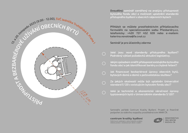 Dvoudílný seminář zaměřený na analýzu přístupnosti bytového fondu obcí a možnosti uplatnění standardů přístupného bydlení v obecních nájemních bytech