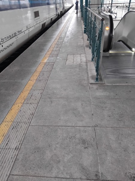 Přístup na všechna nástupiště z podchodu zajišťují pevná schodiště, eskalátory a výtahy (viz Výtah). Zastřešená nástupiště mají v nejužších místech šířku min. 150 cm. Výška nástupních hran je min. 55 cm.
