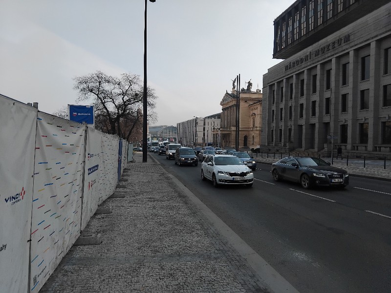 Intenzivní stavební práce a s nimi spojená omezení před budovami Národního muzea povrchový přestup prakticky znemožnily.