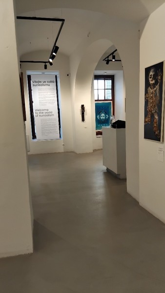 Výstavní prostory se nacházejí v přízemí (v úrovni vstupní haly bez dalšího převýšení) a v suterénu. Podlaží jsou propojená pouze úzkým, částečně točitým schodištěm (-21 a -2 schody). Manipulační prostor v interiéru je dostatečný, průchody jsou široké min. 80 cm.
