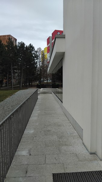 Manipulační prostor v interiéru kavárny je dostatečný. Průchody jsou široké min. 80 cm. Kavárna je vybavena typově různými stoly s různou výškou desky a podjezdu.