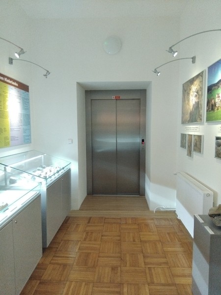 Výtah (automaticky otevírané dveře šířka 100 cm; kabina šířka 160 cm, hloubka 160 cm) spojuje dvůr, přízemí až 2. patro. Manipulační prostor před výtahem je dostatečný. Výtah je průchozí, druhé dveře jsou na boku kabina. Ovladač na nástupních místech je ve výšce max. 106 cm, maximální výška ovladačů uvnitř kabiny je 120 cm.