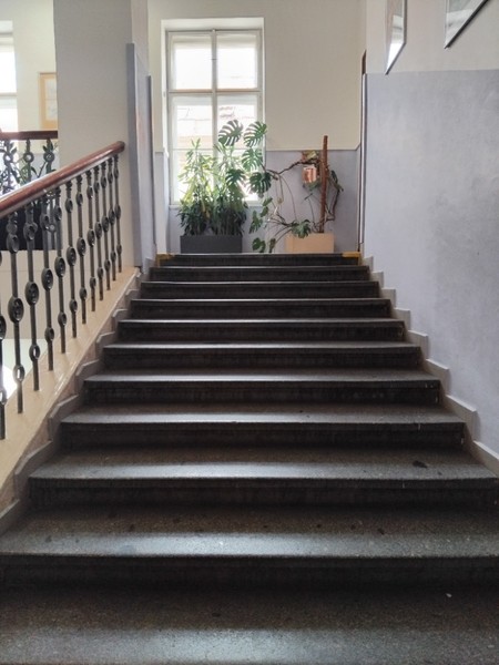 1., 2., 3. a 4. patře, zpřístupněných výtahem, jsou kabinety a učebny (dveře jednokřídlé šířka min. 80 cm nebo dveře dvoukřídlé šířka min. 2x 65 cm) většinou s nízkým schodem ve vstupu (výška max. 4 cm).