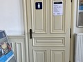 Upravená toaleta (dveře šířka 80 cm; kabina šířka 132 cm, hloubka 144 cm) je rozměrově nedostatečná, navíc má nevhodnou dispozici. Nachází se v nádražní budově v oddělení WC ženy. Toaleta se uzamyká, klíč je k dispozici v pokladně. Jednokřídlé dveře do WC jsou označené a otevírají se mechanicky směrem ven. Přístup k míse (kotvené na pravé boční stěně, je z pohledu od vstupu do kabiny zprava. Prostor pro vozík vedle WC mísy je dostatečný (šířka 80 cm). Toaletní mísa a je vybavena jedním sklopným a jedním pevným madlem, která byla v době mapování vyviklaná.
