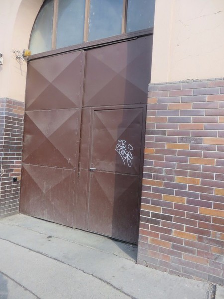 K dispozici je vedlejší vstup, který se nachází vlevo od hlavního vchodu. Vstupuje se do něj brankou (šířka 90 cm) v plechových vratech, otevírá se mechanicky směrem dovnitř. K dalším dveřím se pokračuje přes rozlehlý dvůr s hrubým betonovým povrchem. Dveře do budovy jsou dvoukřídlé (hlavní křídlo šířka 88 cm, vedlejší křídlo je zablokované), otevírají se mechanicky směrem dovnitř. Ze zádveří (šířka 118 cm, hloubka 218 cm) se vstupuje k výtahu v úrovni - 1. patra, který propojuje všechna patra budovy. Zvonkové signalizace pro přivolání obsluhy jsou umístěny u obou vstupů (výška 153 a 158 cm).