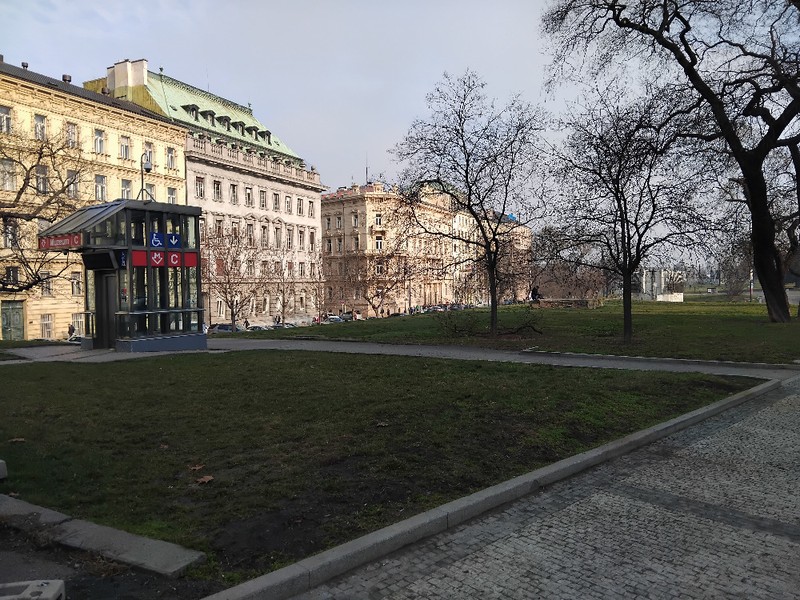 Intenzivní stavební práce a s nimi spojená omezení před budovami Národního muzea povrchový přestup prakticky znemožnily.
