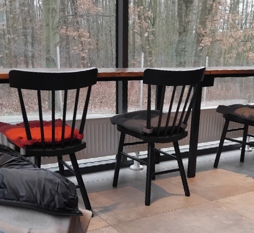 Manipulační prostor v interiéru kavárny je dostatečný. Průchody jsou široké min. 80 cm. Kavárna je vybavena typově různými stoly s různou výškou desky a podjezdu.