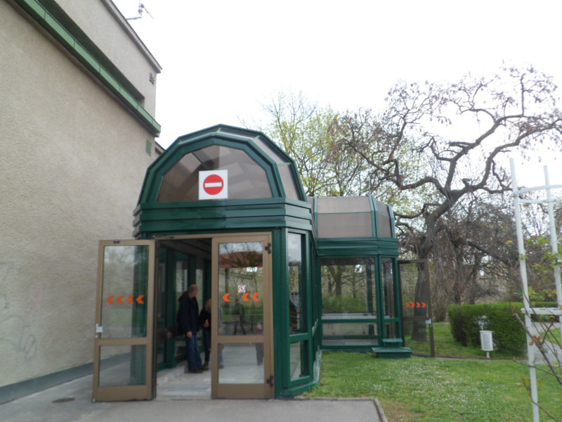 Z vestibulu vede k nástupišti schodiště (-12 schodů). Sklon nástupiště je řešen stoupajícím schodištěm s širokými stupnicemi, ze kterého se vstupuje do vozu.