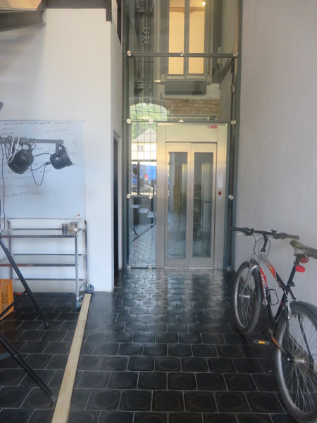 Výtah (automaticky otevírané dveře šířka 80 cm; klec šířka 100 cm, hloubka 125 cm) spojuje 0. až 1. patro. Manipulační prostor před výtahem je dostatečný. Průchozí klec je vybavena madlem a zrcadlem na boční stěně. Sklopné sedátko je k dispozici. Ovladač na nástupních místech je ve výšce max. 114 cm, maximální výška ovladačů uvnitř klece je 111 cm.