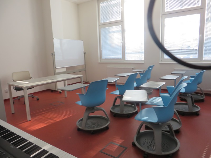 V prvním patře jsou 2 školicí místnosti, 4 hudebny, zkušebna, keramická dílna a sál. Manipulační prostor je dostatečný, všechny průchody jsou širší než 80 cm.