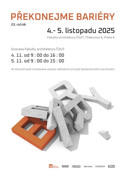 Ročník číslo 23 akce s názvem Překonejme bariéry, určený zejména studentům technických a uměleckoprůmyslových škol, proběhl ve dnech 4. a 4. listopadu 2025. Společný projekt FA ČVUT – Ústavu nauky o budovách, Pražské organizace vozíčkářů a Sjednocené organizace nevidomých a slabozrakých se konal v atriu budovy Fakulty architektury ČVUT v pražských Dejvicích.