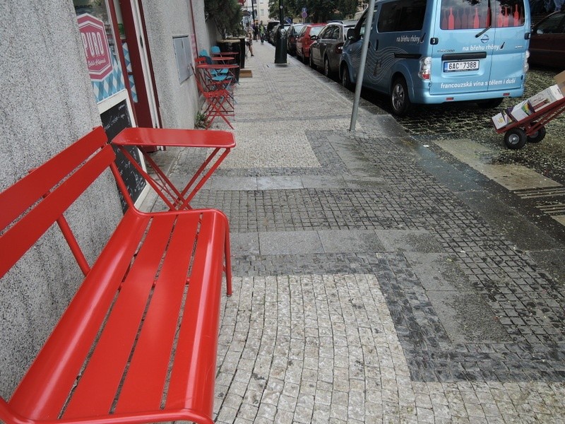 Jedno vyhrazené parkovací stání se nachází u křížení ulic Na Hrobci a Na Výtoni přibližně 80 m od kavárny.