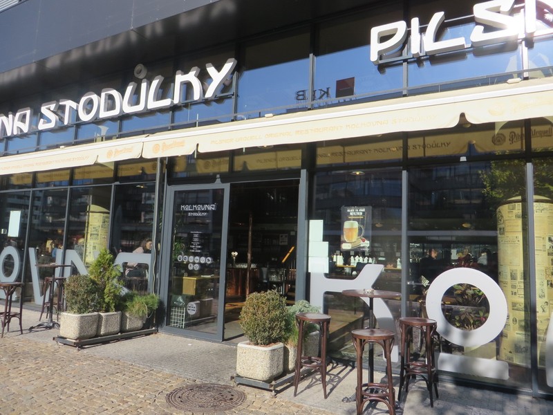Přístup k restauraci od metra je táhlou komunikací v podélném sklonu (5 – 7 %). Komunikace v okolí je tvořena kombinací hrubé dlažby a kvalitní mozaiky. Dvoukřídlé vstupní dveře (šířka 2x 100 cm) s vysokým prahem (výška 3 - 4 cm) se otevírají mechanicky směrem dovnitř.