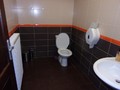Upravená toaleta (dveře šířka 80 cm; kabina šířka 143 cm, hloubka 251 cm) s nesprávným směrem otevírání dveří je samostatná a nachází se v přízemí. Jednokřídlé dveře do WC se otevírají mechanicky směrem dovnitř (!). Přístup k míse, kotvené na zadní stěně, je z pohledu od vstupu do kabiny zleva. Prostor pro vozík vedle WC mísy je dostatečný (šířka 99 cm). Toaletní mísa není vybavena madly.