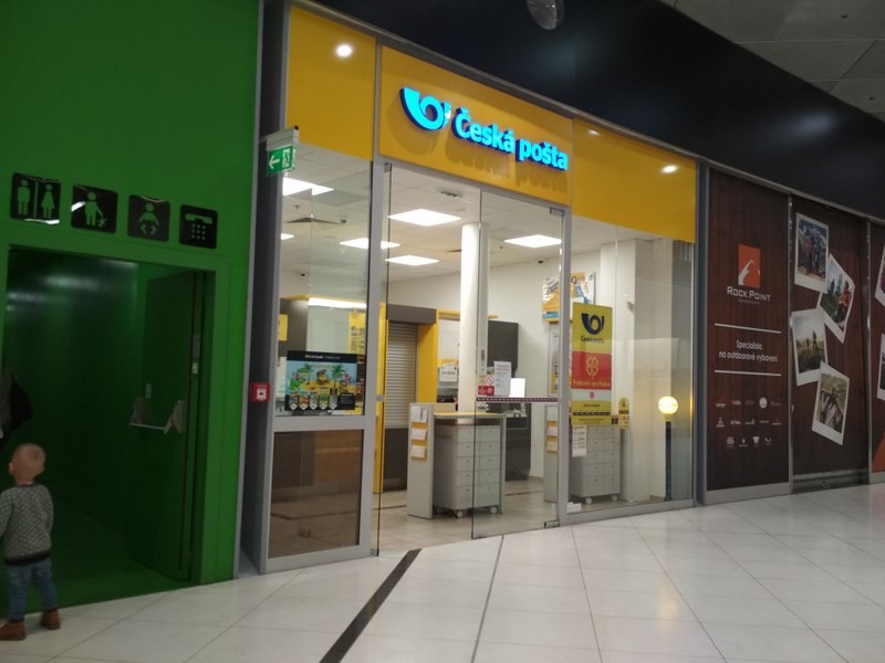 Hygienické zázemí pro veřejnost není součástí pošty. Využít lze upravené toalety v obchodním centru.