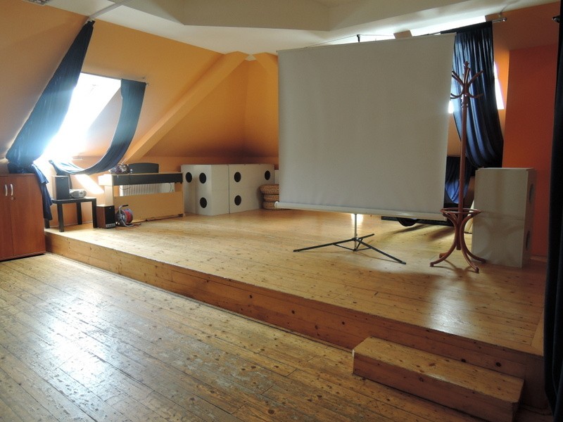 V 1. patře se nachází taneční sál (dveře šířka 90 cm), klubovna (dveře šířka 2x 70 cm) a administrativní zázemí. Točité schody vedou do podkroví s prostorným divadelním a hudebním sálem. V suterénu jsou umístěny sprchy a počítačová učebna.