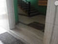 Hlavní vstupní dveře objektu jsou dvoukřídlé (hlavní křídlo šířka 100 cm, vedlejší křídlo šířka 110 cm), otevírají se mechanicky směrem do průchodu. Obousměrná zvonková signalizace (výška 155 cm, odsazení od rohu 10 cm) je umístěna vedle vstupu vpravo. Na konci průchodu je přístup vpravo přes + 2 a – 2 schody směrem ke kanceláři sdružení. Vstupní dveře jsou jednokřídlé (šířka 84 cm) a otevírají se mechanicky směrem ven. U vstupu je + 1 schod (výška 14 cm).