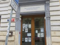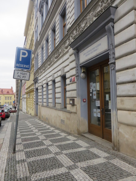 Komunikaci v okolí objektu tvoří převážně mozaiková dlažba v obtížné kombinaci podélného (4 - 6 %) a příčného (4 %) sklonu. Před vstupem je kamenný práh (výška 2 – 4 cm) se zbroušenou hranou. Dvoukřídlé vstupní dveře (šířka 2x 94 cm) se otevírají mechanicky směrem dovnitř. K dispozici je zvonková signalizace s obousměrnou komunikací (výška 143 cm). Z prostorného zádveří (šířka 324 cm, hloubka 231 cm) vedou do chodby jednokřídlé posuvné dveře (šířka 110 cm).