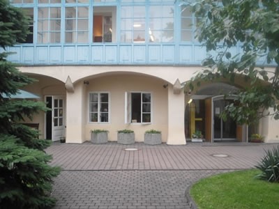 Výtah v pravé části (automaticky otevírané dveře šířka 94 cm; klec šířka 110 cm, hloubka 210 cm) spojuje přízemí až 3. patro. Manipulační prostor před výtahem je omezený (hloubka 140 cm). Klec je vybavena madlem (výška 95 cm) a sklopným sedátkem. Zrcadlo v kleci chybí. Ovladač na nástupních místech je ve výšce max. 104 cm, maximální výška ovladačů uvnitř klece je 128 cm.
