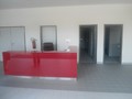 Vlevo vedle pokladen je dvoukřídlými dveřmi (šířka 2x 80 cm) přístup k občerstvení vybavenému stoly s podjezdem (výška 72 cm) a barovým pultem (výška 134 cm).
