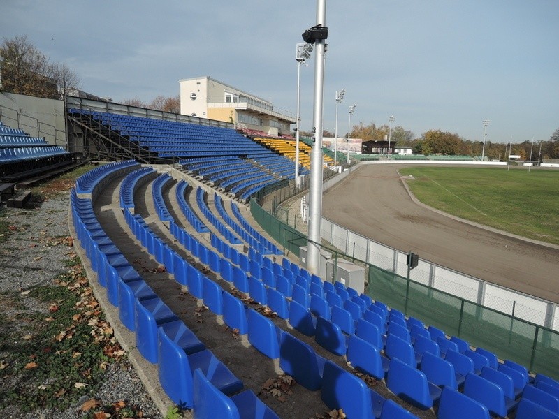 Na západní straně stadionu je tribuna (kapacita 5000 míst). Místa vyhrazená pro osoby na vozíku se nacházejí na úrovni osmé řady v bloku J4 (vstup vyznačen symbolem přístupnosti), celková vyhrazená plocha (šířka 300 cm, hloubka 190–200 cm) počítá se třemi místy. Přístup k vyhrazeným místům vede po dvouramenné zalomené rampě (1. úsek: sklon 8 %, šířka 120–150 cm, délka 600 cm, jednostranné madlo výška 78 cm; 2. úsek: sklon 8 %, šířka 120 cm, délka 210 cm), povrch rampy tvoří betonová dlažba.