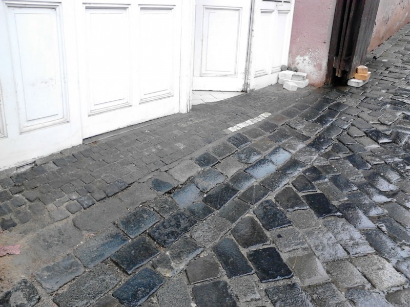 Veřejné toalety se nachází v dolní části ulice Na Opyši. Přístupový chodník z Klárova má příčný (3,5 %) i podélný sklon (8 %). Před vstupními dveřmi je nájezd (sklon 18 %, délka 103 cm). Upravená kabina (dveře šířka 80 cm; kabina šířka 149 cm, hloubka 153 cm) je součástí oddělení WC ženy. Vstupní dveře na toalety jsou jednokřídlé (šířka 2x 93 cm) a otevírají se mechanicky dovnitř. V předsíni (šířka 133 cm, hloubka 386 cm) je zúžený průchod (šířka 75 cm). Neoznačené jednokřídlé dveře do kabiny WC se otevírají směrem ven. Přístup k míse z pohledu od vstupu do kabiny je zprava. Prostor pro vozík vedle WC mísy je dostatečný (šířka 90 cm). Toaletní mísa a je vybavena dvěma sklopnými madly.
