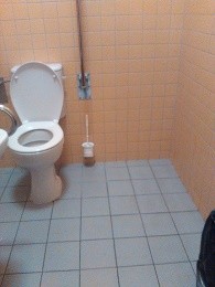 V patrech běžné toalety jsou se zúženým průchodem a s vysokými prahy (výška 3,5 cm).