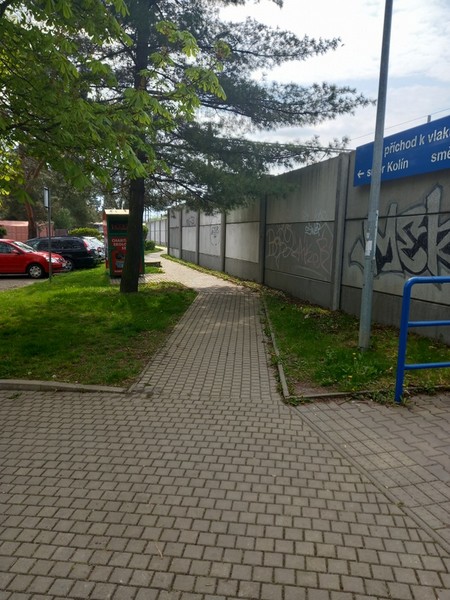 Z ulice Hruškovská stoupá na I. nástupiště chodník v mírném sklonu (sklon max. 5 %) s kvalitní betonovou dlažbou.