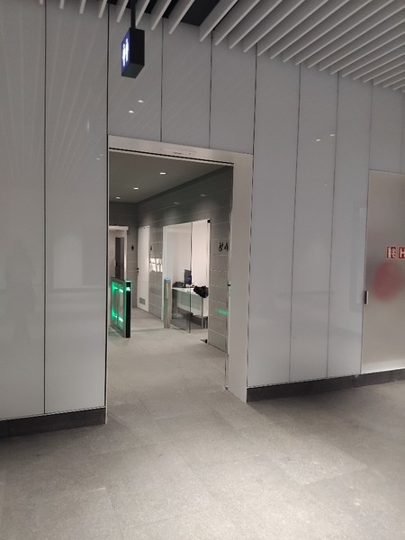 Do nádražní haly vedou dvoukřídlé dveře, které se otevírají automaticky směrem do stran. Šířka průchodu je dostatečná (min. 100 cm).