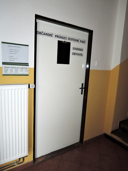 V přízemí budovy je bezprostředně za hlavním vstupem umístěno oddělení evidence obyvatel, občanských průkazů a cestovních dokladů (dveře šířka 90 cm). Kanceláře ostatních odborů se již nacházejí v patře.