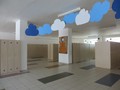 Od šaten vede krátké schodiště (-6 schodů) do snížené části přízemí. Všechny třídy, odborné učebny a školní jídelna se nachází ve sníženém přízemí až 2. patře. Jednotlivá patra jsou propojena pouze schodištěm.