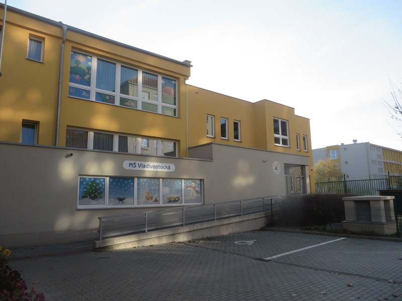 V nové části MŠ se nachází jedna třída v úrovni vstupu (zvýšené přízemí) a jedna třída v 1. patře, které se zvýšeným přízemím propojuje osobní výtah. Manipulační prostor je dostatečný, všechny průjezdy jsou širší než 80 cm. Ve zvýšeném přízemí se nachází upravená toaleta pro osoby s omezenou schopností pohybu. Celou docházku je možné zajistit v nové části budovy.