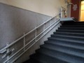Od vstupu vede do vstupní haly s vrátnicí (pult výška 115 cm) ve zvýšeném přízemí (1. NP) schodiště (+12 schodů). Přístup je řešen šikmou schodišťovou plošinou (nosnost ? kg; přepravní plocha šířka 80 cm, hloubka 90 cm). Ve spodní stanici je možný pouze nástup z boku, manipulační plochy na horní schodišťové podestě je dostatečná. Plošinu lze využívat jen za asistence personálu.