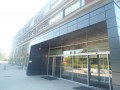 Dvoukřídlé dveře hlavního vstupu do budovy se otevírají automaticky do stran. Šířka průjezdu je dostatečná. Z prostorného zádveří vedou do interiéru budovy další totožné dveře.