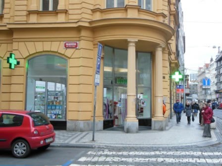 Před vstupem je k dispozici přímá rampa (sklon 7,2 %, šířka 162 cm, délka 153 cm) opatřená drsným povrchem. Rampa není zakončena horní podestou a zasahuje až ke dveřím. Hlavní vstupní dveře objektu jsou dvoukřídlé (šířka 2x 75 cm) a otevírají se mechanicky směrem dovnitř. Zvonková signalizace u dveří není.