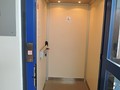 Částečně přístupná toaleta (dveře šířka 93 cm; kabina šířka 259 cm, hloubka 153 cm) je samostatná a nachází se v přízemí. Jednokřídlé dveře do WC nejsou označené a otevírají se mechanicky směrem ven. Přístup k míse z pohledu od vstupu do kabiny je zprava. Prostor pro vozík vedle WC mísy je dostatečný (šířka 176 cm). Toaletní mísa je vybavena dvěma sklopnými madly.
