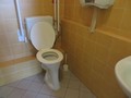 Částečně přístupná toaleta (dveře šířka 90 cm; kabina šířka 140 cm, hloubka 180 cm) je samostatná a nachází se v 1. patře na úrovni hlavního vstupu. Jednokřídlé dveře do WC jsou označené a otevírají se mechanicky směrem ven. Přístup k míse z pohledu od vstupu do kabiny je zleva. Prostor pro vozík vedle WC mísy je dostatečný (šířka 80 cm). Toaletní mísa je vybavena dvěma sklopnými madly. Kabina je uzamčená, klíč je k dispozici u personálu.